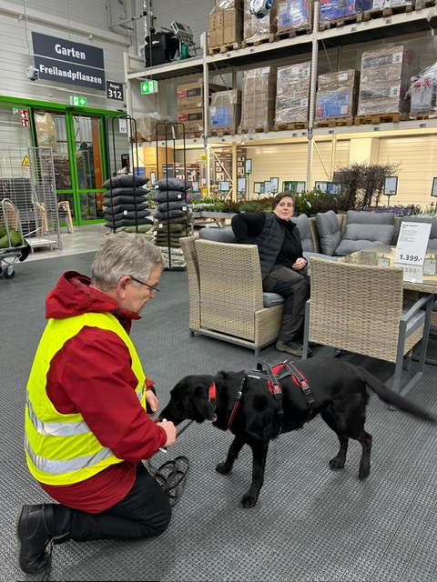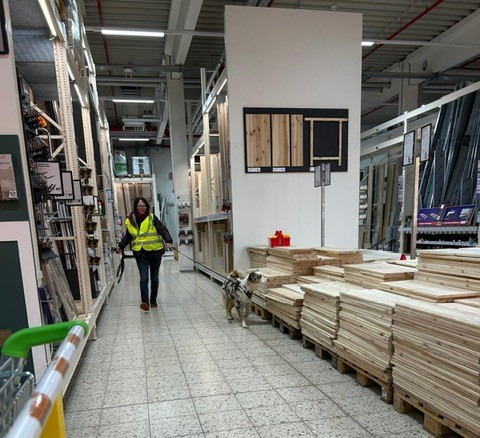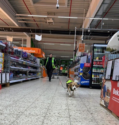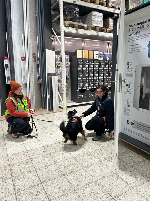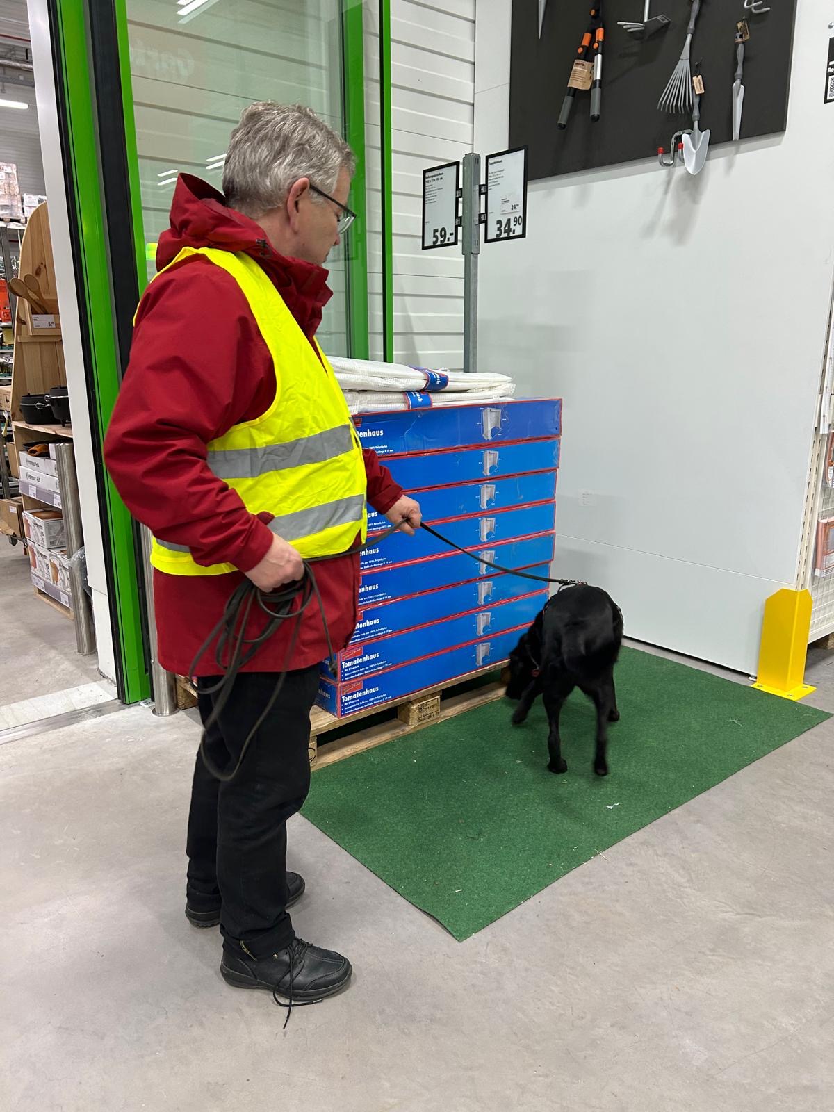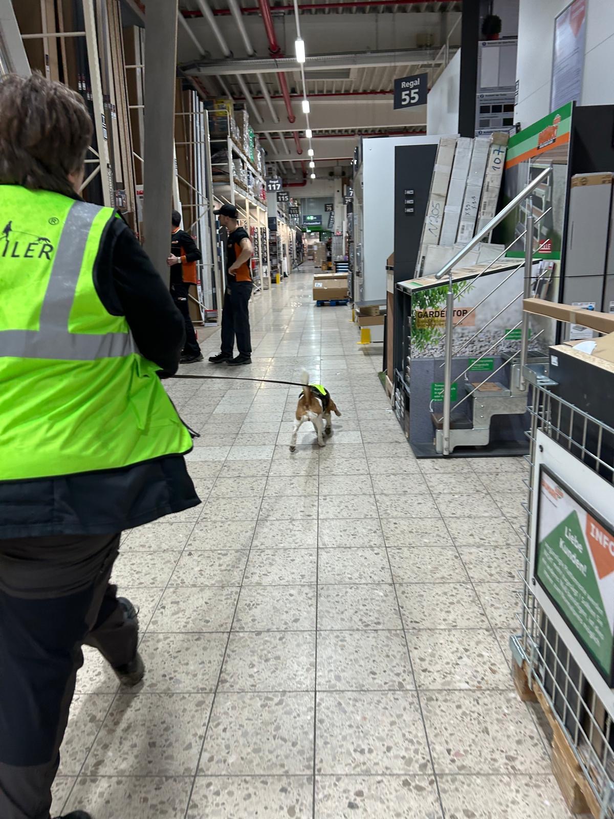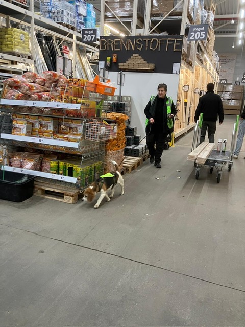 Für einige Hunde war es der allererste Indoor Trail im Globus Baumarkt in Rottenburg. Ganz schön aufregend, in den langen Gängen mit glattem Fußboden und vielen fremden Gerüchen nach der Versteckperson zu suchen. Vor allem, wenn sie hinter Türen, Paletten, Gabelstaplern, in Regalen oder Duschkabinen versteckt sind und auch noch Hundefutter auf Nasenhöhe ausliegt!