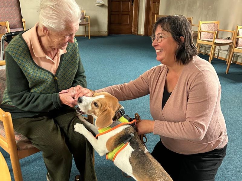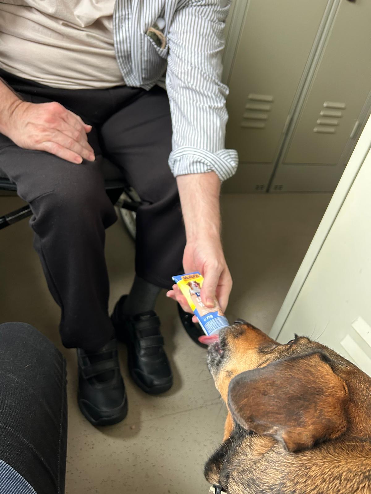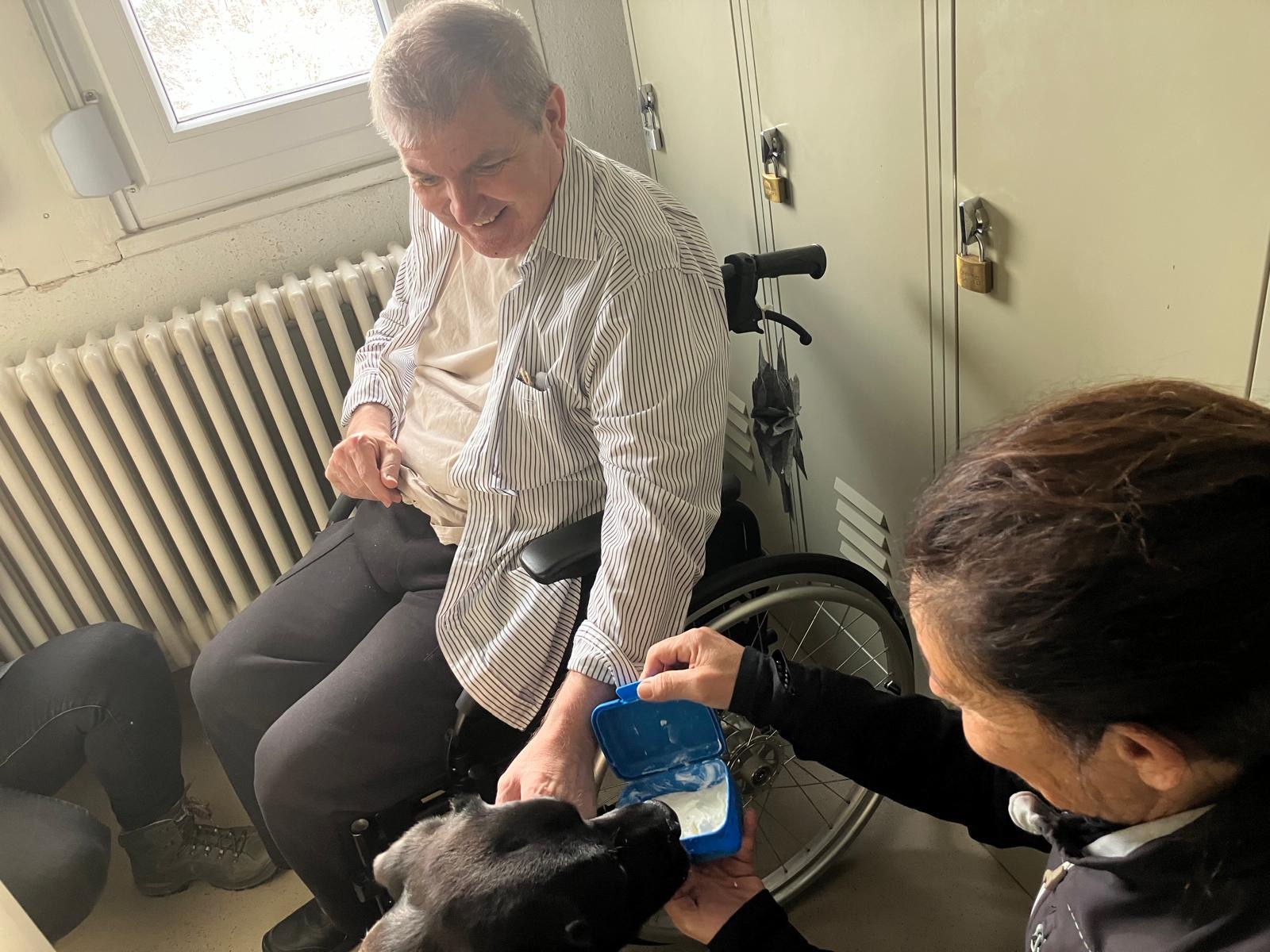 Einige der Bewohner, oft vormals selbst Hundebesitzer, stellen sich als Versteckperson zur Verfügung. Für die Hunde war die Suche gar nicht so einfach: Beim Start am Frühstückstisch mussten sich die Vierbeiner gleich zwischen den restlichen Krümeln am Boden und dem Geruchsartikel entscheiden. Vorbei an Putzmaschinen, Essenswägen, Hoyerliftern, Küchen, Lagerräumen, Rollstühlen, rein in den Aufzug, treppauf und treppab ging die Suche. Strahlende Gesichter der gefundenen Bewohner erwarteten die Teams und der ein oder andere durfte seinen Hund füttern oder streicheln.